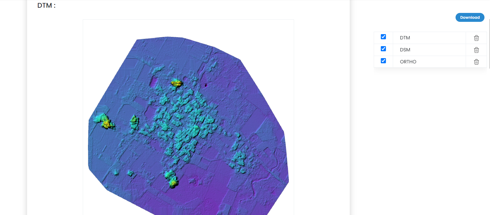 This report will display the details of the map, DSM, DTM, and Ortho images. It also displays the name of a project, the name of a plan and name of the user.