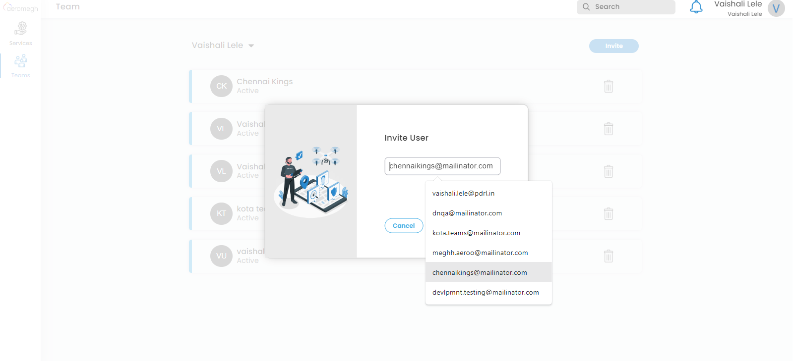 To use this feature in DroneNaksha, the user has to use the "Teams" feature of AeroMegh Services. Through this functionality, an invitation will be sent to the concerned user. That concerned user has to accept this invitation by opening his email inbox and clicking on the link to signup and login to the account.