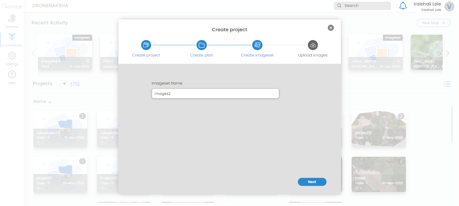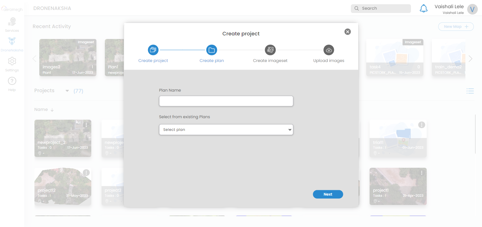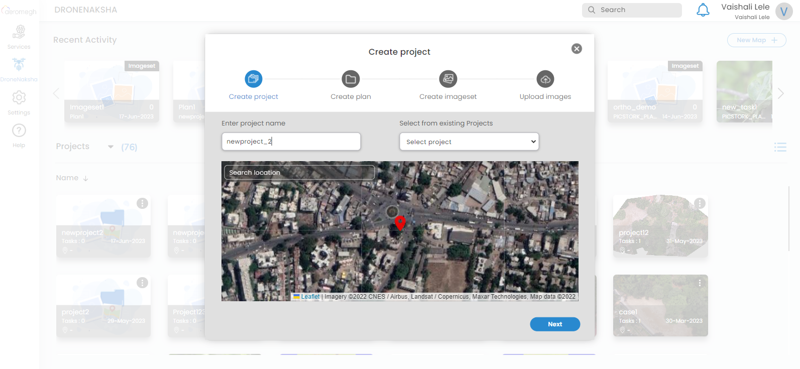 Create a project by entering the name of a project in the given window and proceed with the creation of a plan. If the user wants to create a new project, then enter the name of a project and select a location on the map.