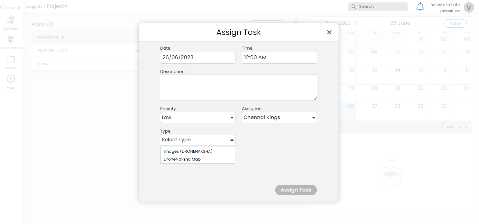 Planner feature of DroneNaksha allows you to plan activities according to the day and date. The user may add a task and assign it to his colleague to perform on the scheduled date and time. The user is allowed to track these activities through this planner. The status of the task will be changed according to the schedule and it can be added or deleted from the task list after the completion of a task.