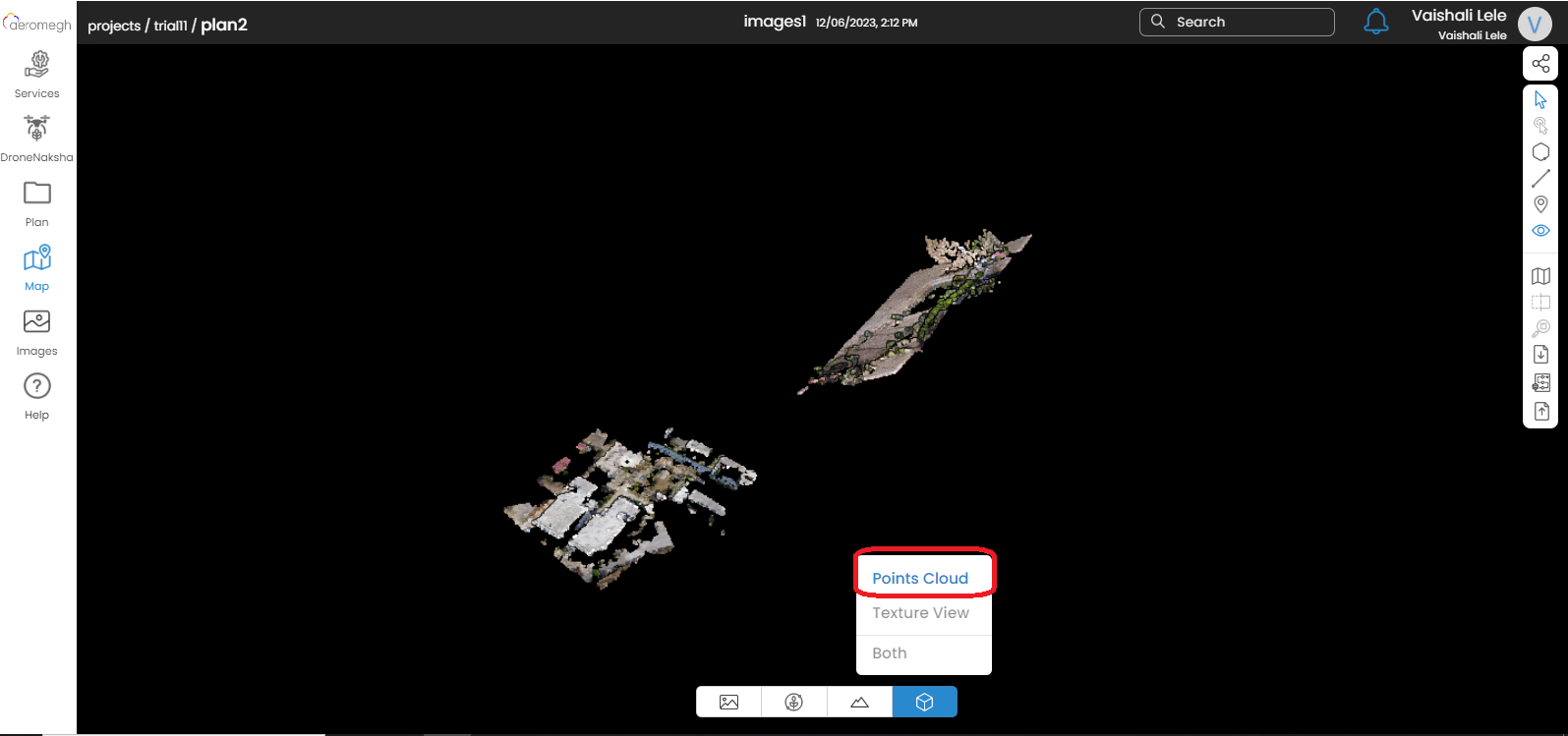 3. Three options will be displayed on the screen such as "Point Cloud", "Texture View", and "Both".